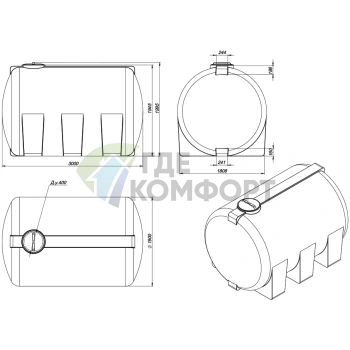 Емкость Экопром ЭВГ 3000 литров цилиндрическая
