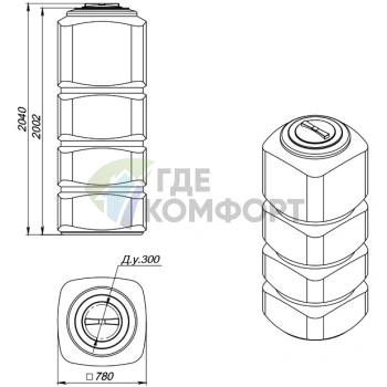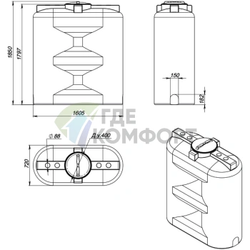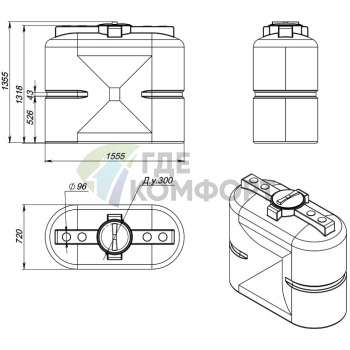 Емкость Экопром ЭВГ 750 литров цилиндрическая
