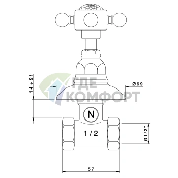 Вентиль запорный NICOLAZZI ARENA 1/2 хром (3312CR44)