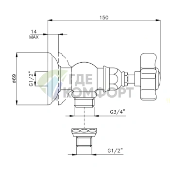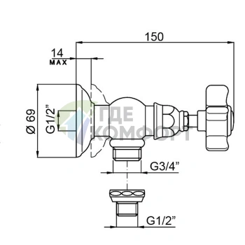 Запорный вентиль Nicolazzi Mac Kinley 05 3/4, хром (4912CR29)