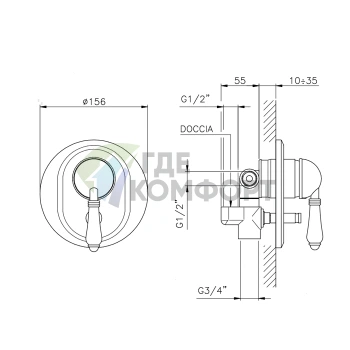 Вентиль запорный Nicolazzi Half Dome Crystal 1/2, хром (1412CR93)
