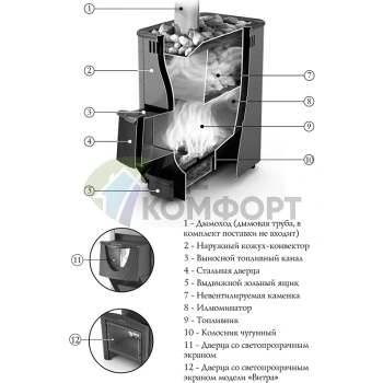 Печь Термофор Ангара Inox Витра ТО антрацит НВ