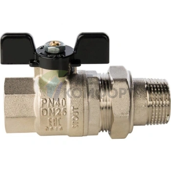 Кран шаровой с фильтром 1, ручка бабочка Stout