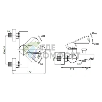 Смеситель Zorg Sanitary ZR 116 W для ванны с душем