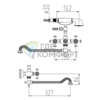 Смеситель Zorg Antic A 2001W-SL для ванны с душем