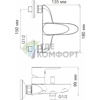 Смеситель Zorg Sanitary ZR 104 W для ванны с душем