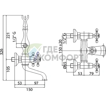 Смеситель Cezares Retro VD1-03 для ванны с душем