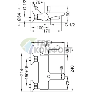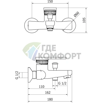 Смеситель Cezares Golf VD 01 Bi для ванны с душем