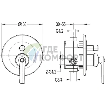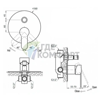 Смеситель Cezares Baden F DIM 01 С ВНУТРЕННЕЙ ЧАСТЬЮ-для душа