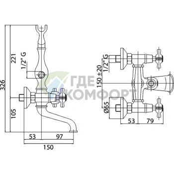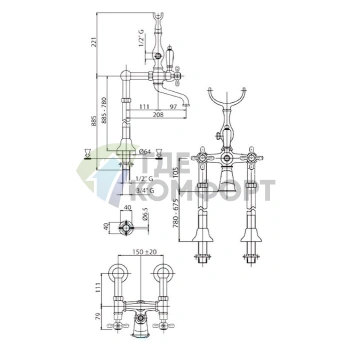 Смеситель Cezares Vintage VINTAGE-VM-03/24-Sw для ванны с душем