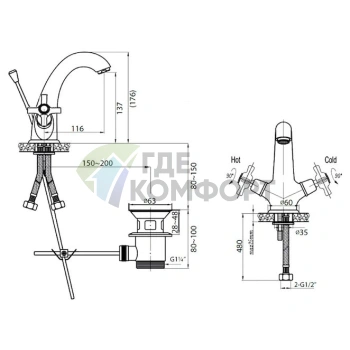 Смеситель Cezares Diamond DIAMOND-LS2-03/24-Sw для раковины