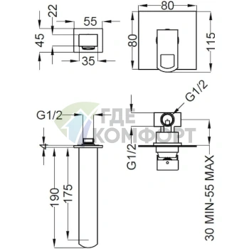 Смеситель Cezares Over VDIM-01-Cr С ВНУТРЕННЕЙ ЧАСТЬЮ
