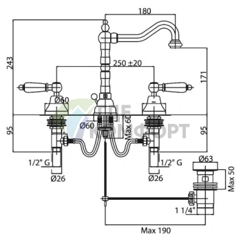 Смеситель Cezares Vintage VDIM-01-Sw-N С ВНУТРЕННЕЙ ЧАСТЬЮ