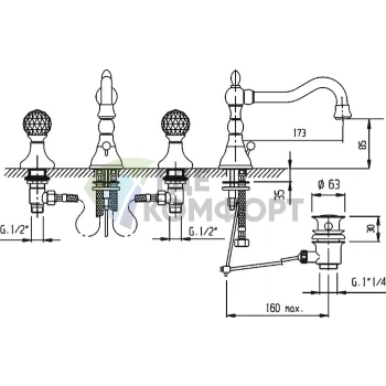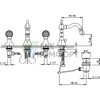 Смеситель Cezares Venezia VDIM-03/24-Bi С ВНУТРЕННЕЙ ЧАСТЬЮ