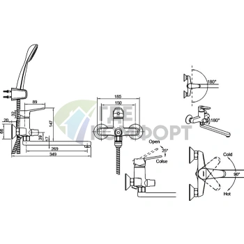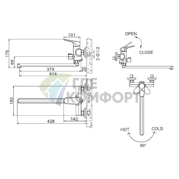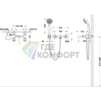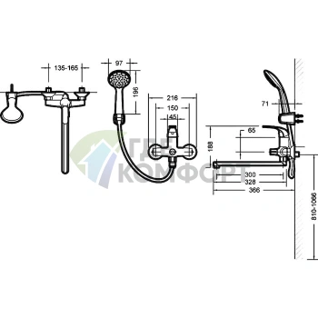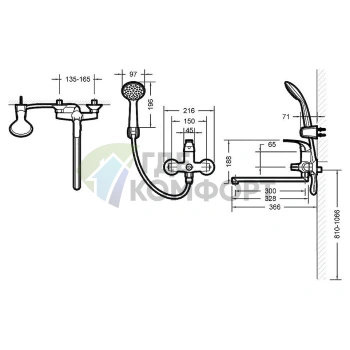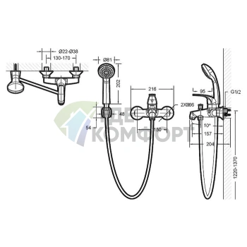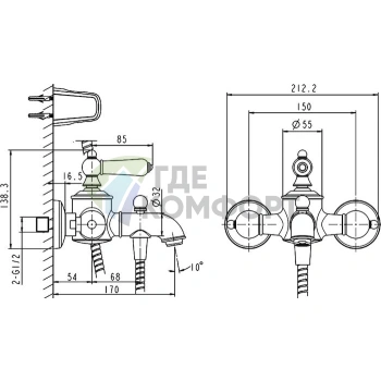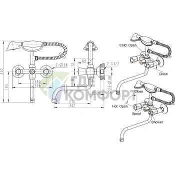 Смеситель Bravat Duo F6133186CP-B-RUS для ванны с душем