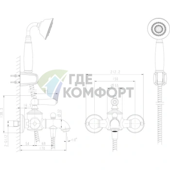 Смеситель Wasserkraft Lossa 1201 для ванны с душем
