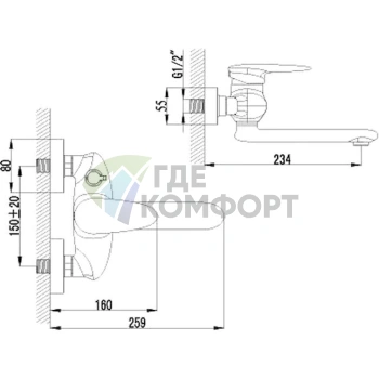 Смеситель Lemark Standard LM2102C для ванны с душем