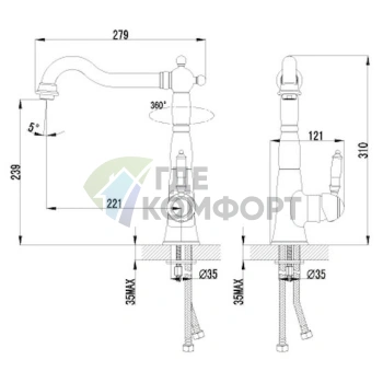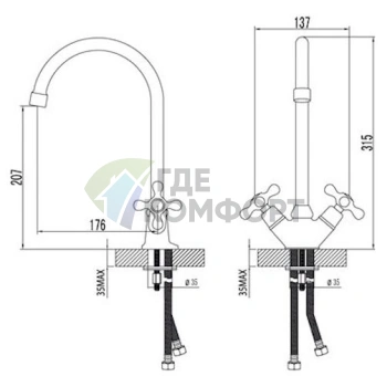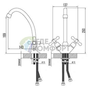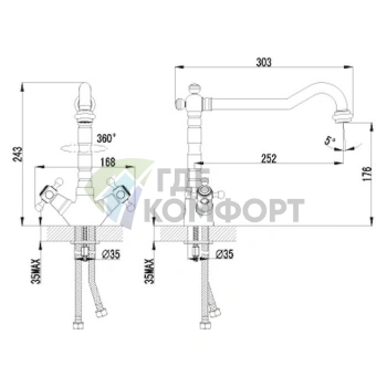 Монтаж: На столешницу, На мойку