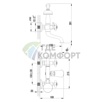 Смеситель Lemark Vintage LM2812B для ванны с душем