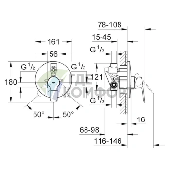 Смеситель Grohe BauEdge 29079000 С ВНУТРЕННЕЙ ЧАСТЬЮ