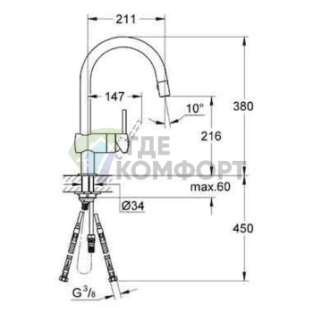 Смеситель Grohe K4 Eurosmart для кухни однорычажный