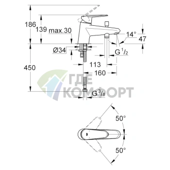 Смеситель для ванны с душем Grohe Eurodisc Cosmopolitan