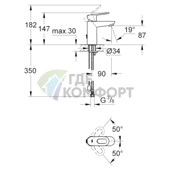 Смеситель для раковины Grohe Eurodisc Cosmopolitan 23054002