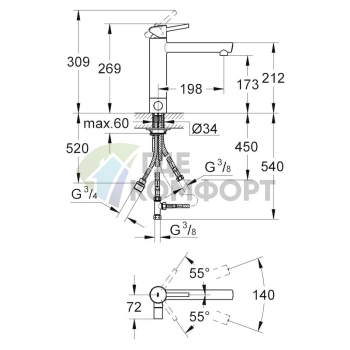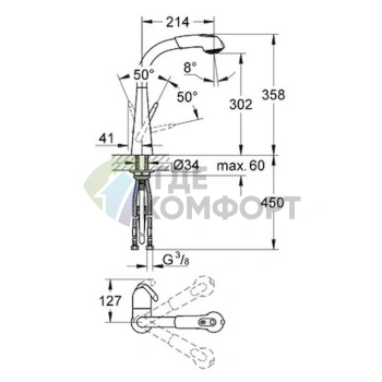 Стильный смеситель Grohe Eurodisc Cosmopolitan 33772002 для кухни