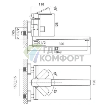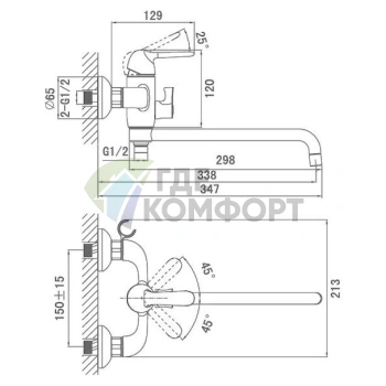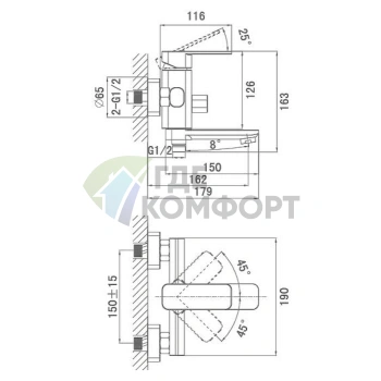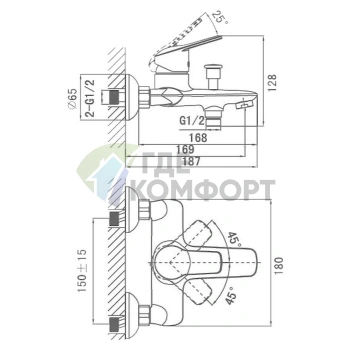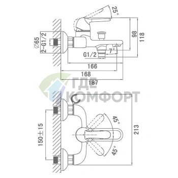 Настенный смеситель для душа D K Altportel Rhein DA1333101