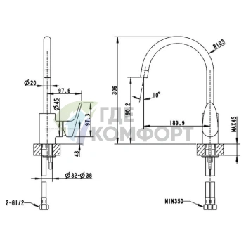 Смеситель для кухни D K Ambrosius Rhein DA1342401