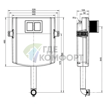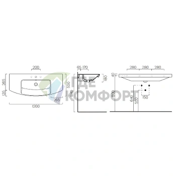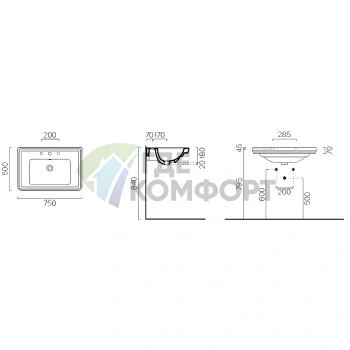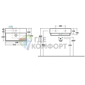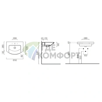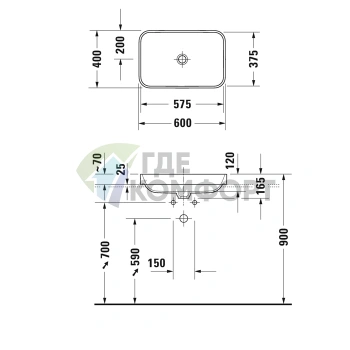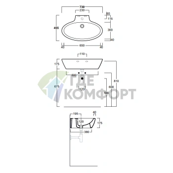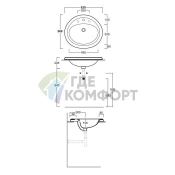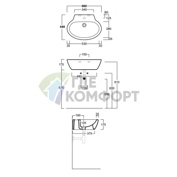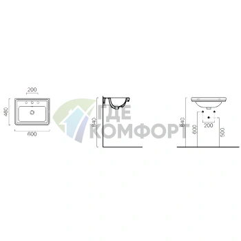 Раковина GSI Modo 65x50 см с переливом, 1 отв., белая