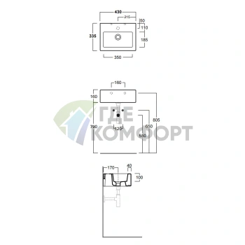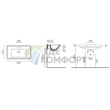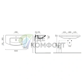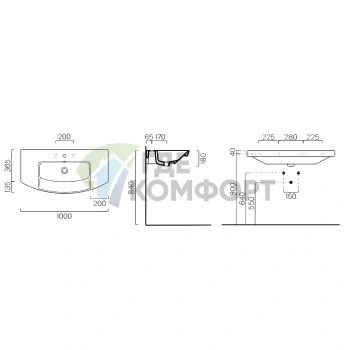 Раковина GSI Modo 100x50 см с переливом, 1 отв., белая