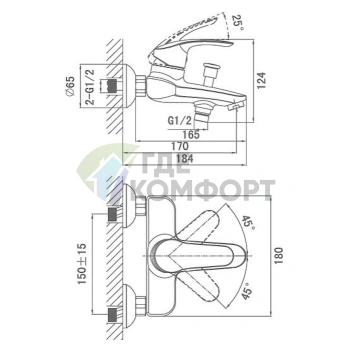 Смеситель для ванны с душем D K Wurzburg Bayern DA1113201