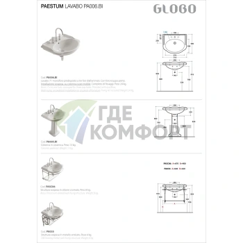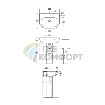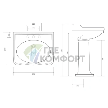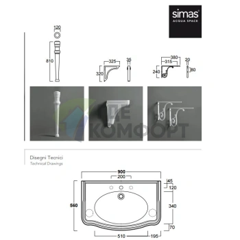 Раковина подвесная SIMAS E-LINE 65 см с пьедесталом, белая
