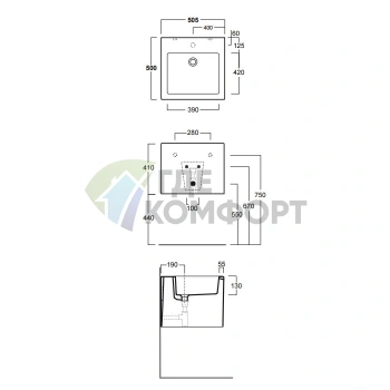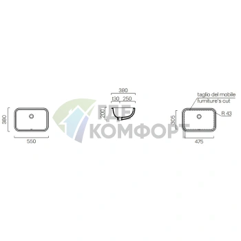Полувстраиваемая раковина GLOBO Forty3 55x47x15 см белая