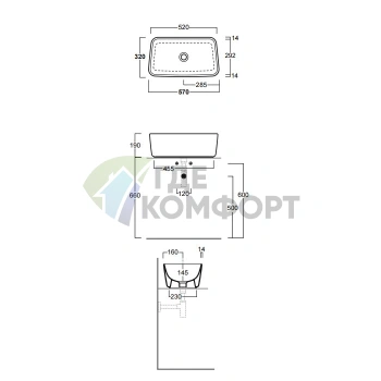 Раковина накладная GLOBO Forty3 50×37×14 см белая