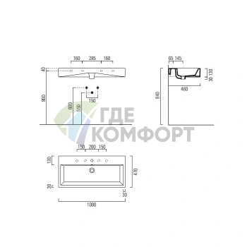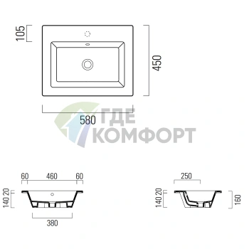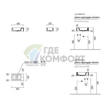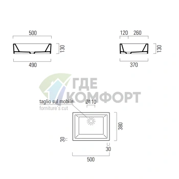 Раковина GSI Norm 120x50 белая: врезная мойка с переливом