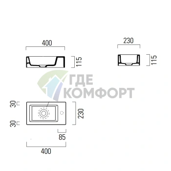 Накладная раковина GSI Kube 60 см без перелива, белая