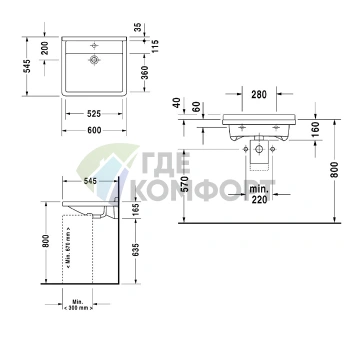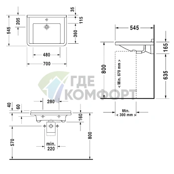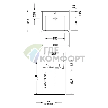 Подвесная раковина Duravit Starck III 700х545 мм, белая (309700000)