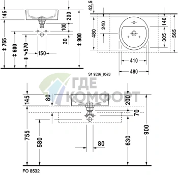 Белый пьедестал DURAVIT Happy D2 для раковин 231660-231680 (858270000)