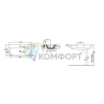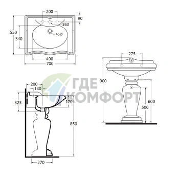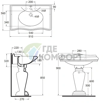 Умывальник AZZURRA JUBILAEUM с удобной спинкой, 91x56 см, белый
