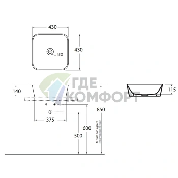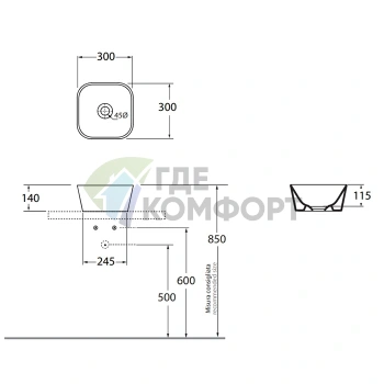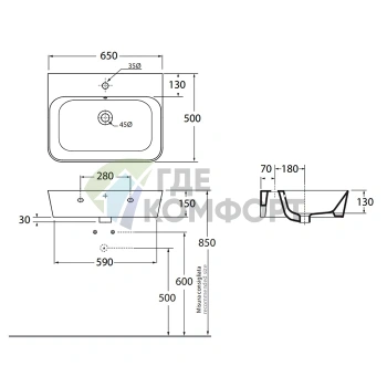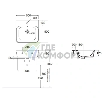 Подвесная раковина AZZURRA BUILD 65×50×16 см белая