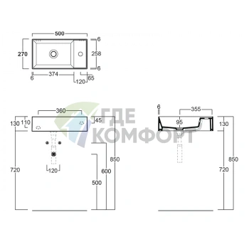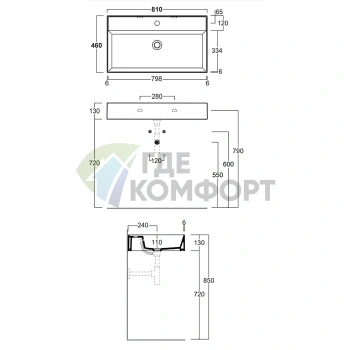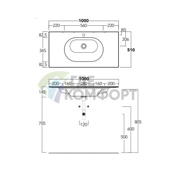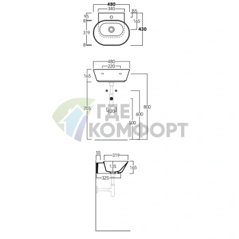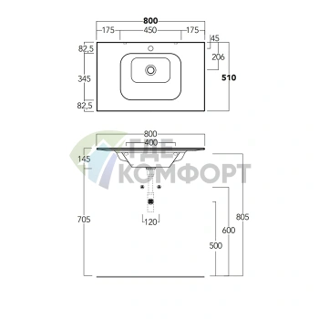 Раковина SIMAS AGILE 810x460 мм с переливом цвет CEMENTO MATT