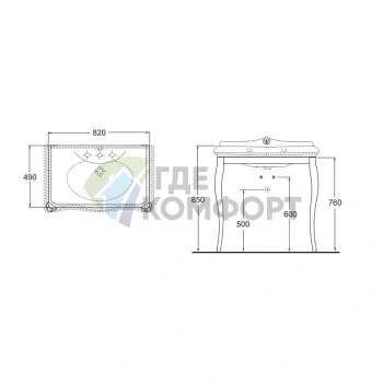 Стойка для раковины AZZURRA JUBILAEUM 90 см, хром