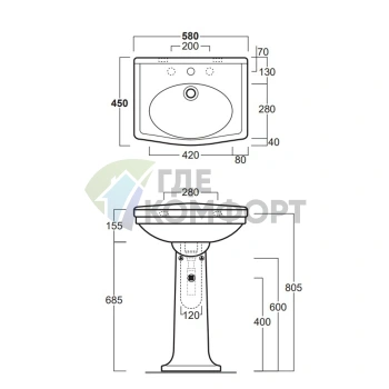 Пьедестал для умывальника SIMAS Londra LO924 белый