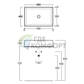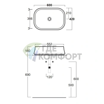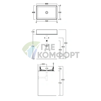 Раковина накладная Simas Henges 100x50 см, черная глянцевая