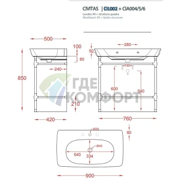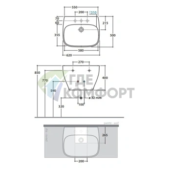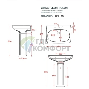 Раковина Artceram Civitas 68x50 см, серый, 1 отверстие (CIL001 34 00)