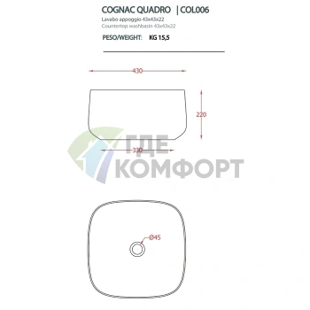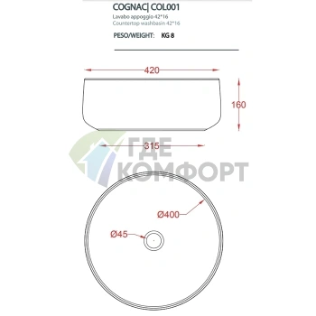 Раковина Artceram Cognac 43x43 см накладная цвет tortora (COL006 40 00)