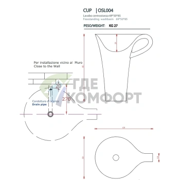 Пьедестал для раковины Artceram Civitas 68 см черный (CIC001 03 00)