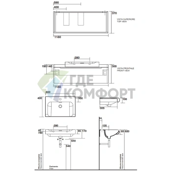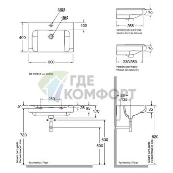 Раковина настольная Artceram Quadro 43x43 см Portoro Gold (COL006 48 00)